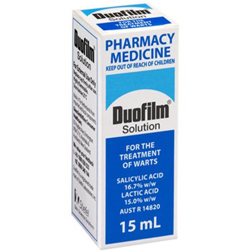 Duofilm is a topical treatment for warts, as well as verrucas, corns and calluses. This solution is a topical salicylate and works by causing the skin to swell, soften, and then slough or peel in areas where it is applied.