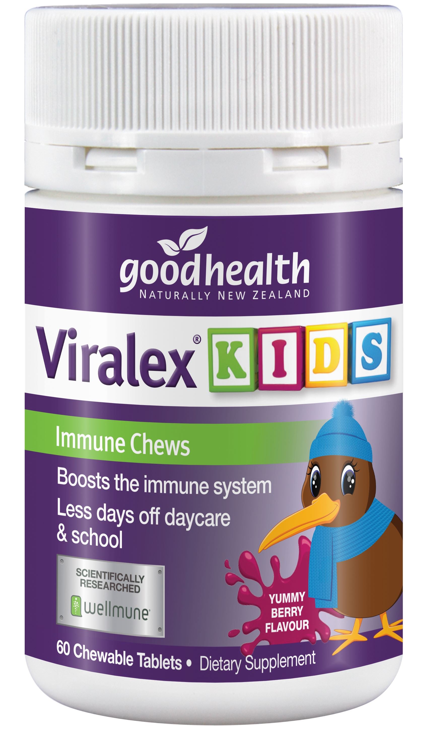 Good Health Viralex Kids Immune Chews are specially formulated to support children’s immunity with scientifically researched Wellmune for less days off daycare & school. Viralex Kids Immune Chews help to boost and support children’s immune systems and further supports their immune restoration.