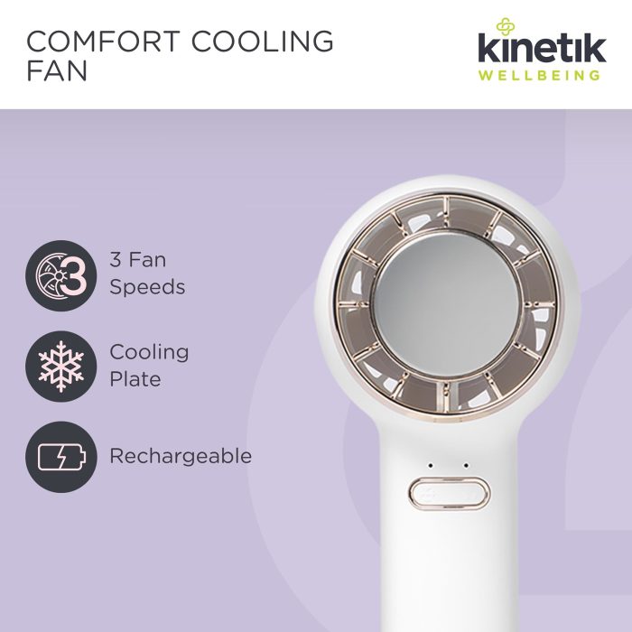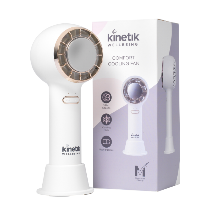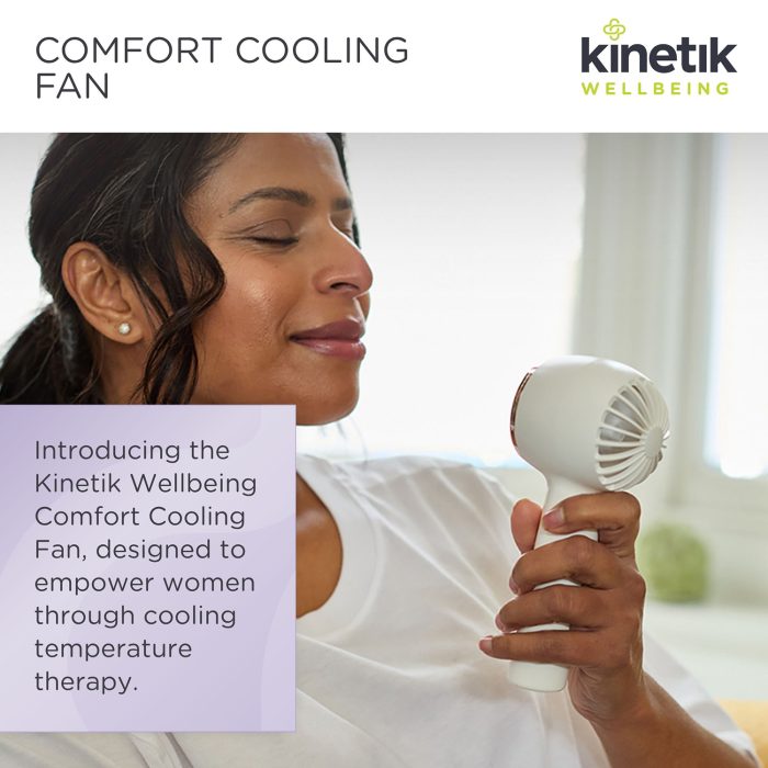 Introducing the Kinetik Wellbeing Comfort Cooling Fan, designed to empower women through cooling temperature therapy.
