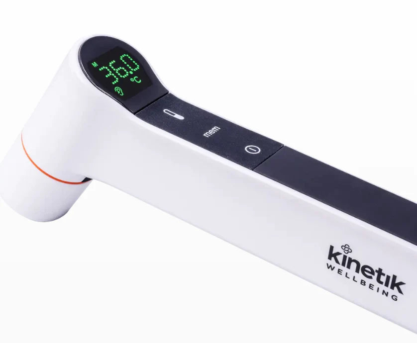 The Kinetik Wellbeing Ear and Forehead Thermometer uses infra-red technology, to accurately measure temperature to within ±0.2°C. It is simple to use and gives a reading in just 1 second.