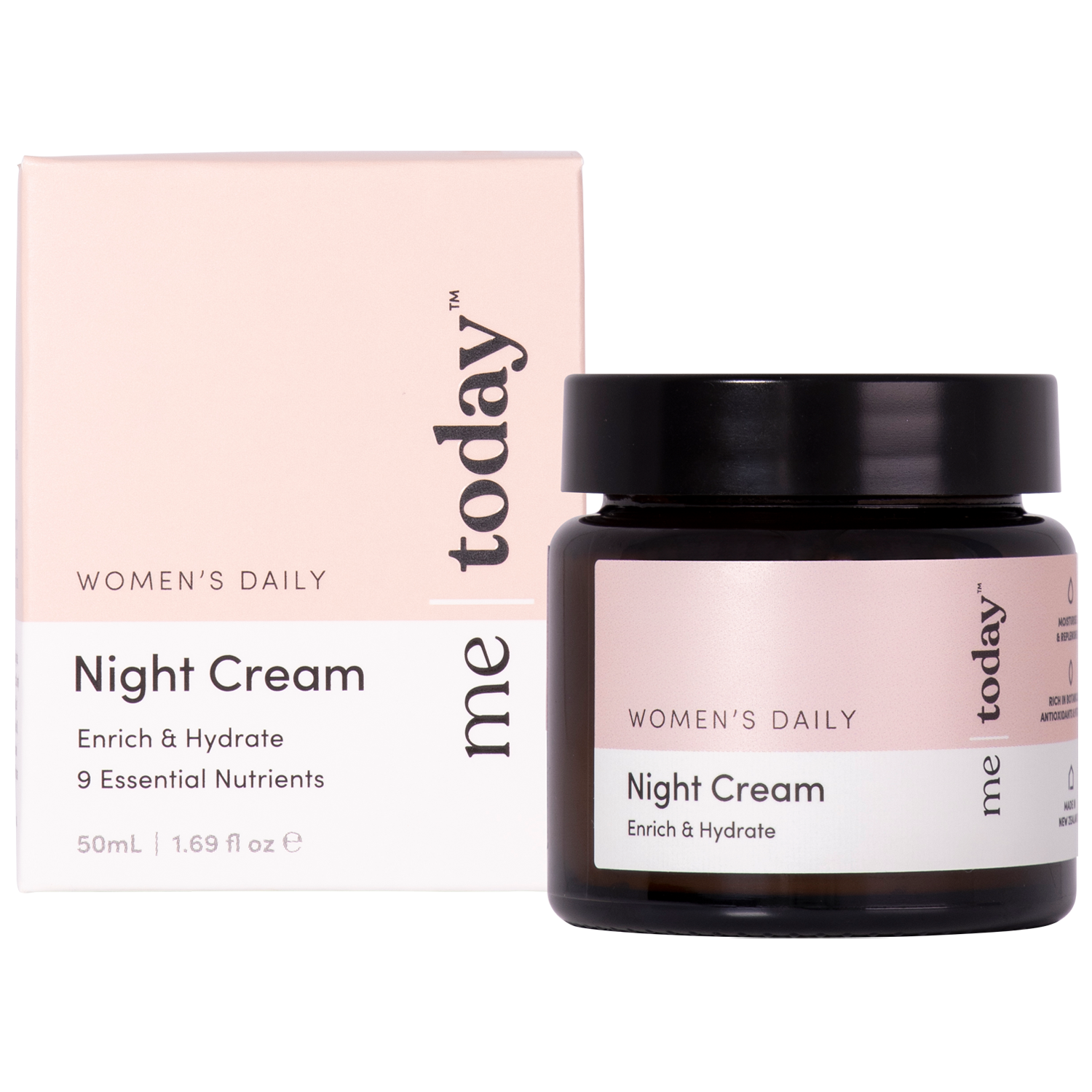 Enriched with 9 essential botanicals, antioxidants and vitamins from Me | Today's Women's Daily supplement blended specially for your skin, this Night Cream deeply moisturises and replenishes, leaving your face extra soft and plump. It is also Cruelty Free and Vegan Friendly!