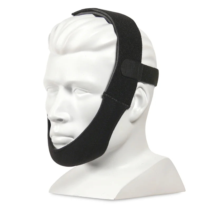 Chin straps are optional accessories that can be used with a variety of nasal and nasal pillows masks. They wrap around the top of your head and underneath your chin to prevent your mouth from opening at night.